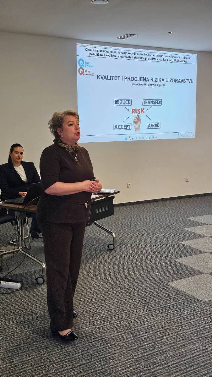 14.04.26 Dana 09.04.2026. godine u Sarajevu su održani četvrti i peti modul u okviru ciklusa obuke u organizaciji Agencije za kvalitet i akreditaciju u zdravstvu u Federaciji Bosne i Hercegovine (AKAZ), namijenjeni koordinatorima kvaliteta i drugim profesionalcima iz oblasti unapređenja kvaliteta, sigurnosti i akreditacije u zdravstvu.